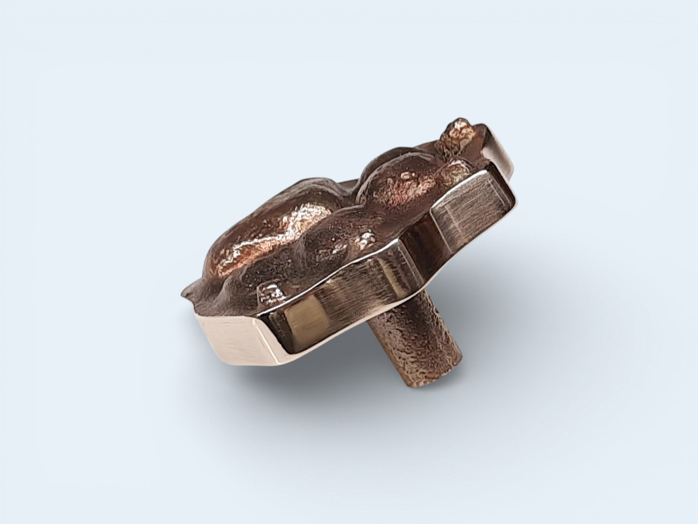 Each knob is individually hand-worked in wax prior to casting, so no two are exactly alike. The surface may be lightly wire-brushed or polished, preserving the fine details of your pet’s paw. Small pits, lines, or subtle textures may appear in the metal — natural features of the casting process that make each piece unique. The back of the paw, where it attaches to the shank, is left in its natural finish. These slight variations are part of the handcrafted nature of every Pet-Paw Cabinet Knob, giving it charm and character while remaining fully functional.