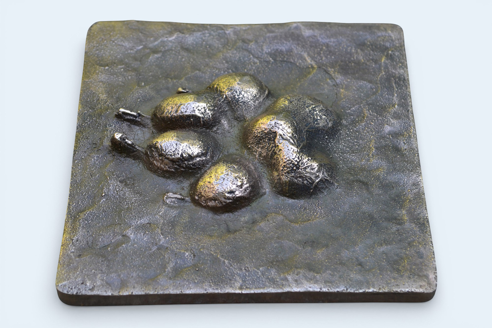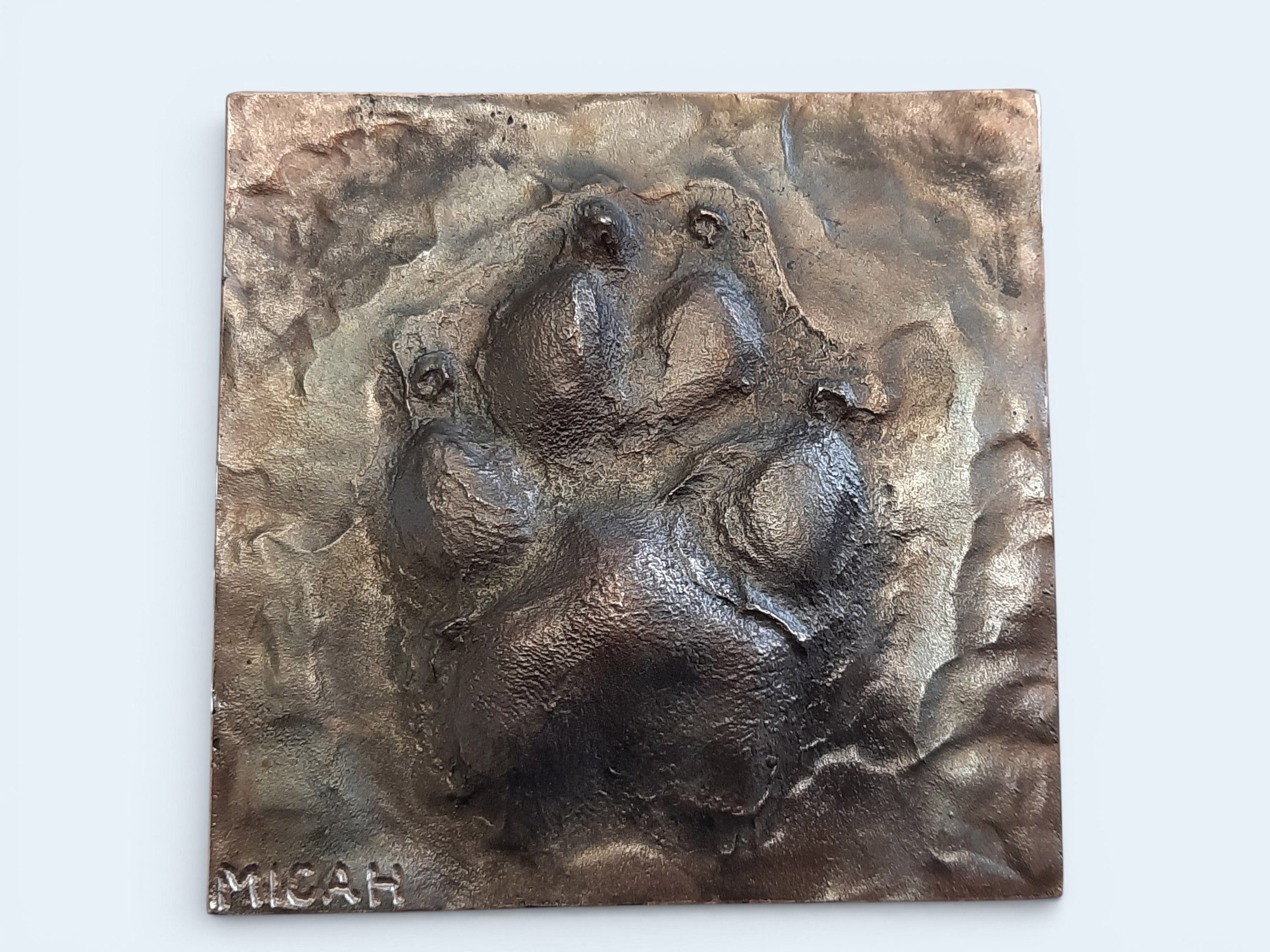 Each tile is individually hand-worked in wax prior to casting. The tile surface surrounding the paw may feature gentle, organic textures or a smooth finish, chosen at the artist’s discretion. These subtle variations are part of the handcrafted nature of each piece.